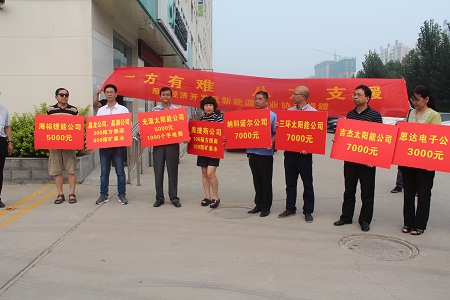 洪災無情人有情。地處邢臺經(jīng)濟開發(fā)區(qū)的光源太陽能科技有限公司一方面做好自我防汛抗汛工作,一方面向邢臺經(jīng)濟開發(fā)區(qū)災民捐款捐物,幫助受災群眾渡過難關。