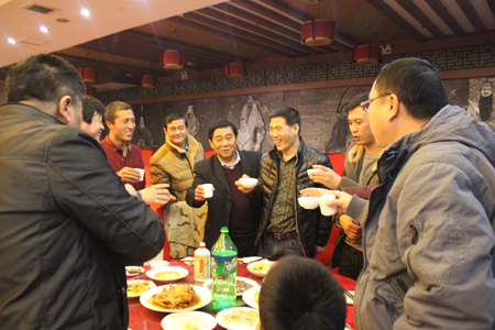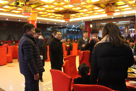 晚會(huì)結(jié)束后,春節(jié)晚宴開始。董事長(zhǎng)李成彬、總經(jīng)理劉迎波與公司領(lǐng)導(dǎo)來到員工中間,向員工敬酒,祝賀新年。
