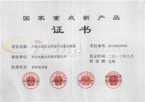 國家重點新產(chǎn)品證書